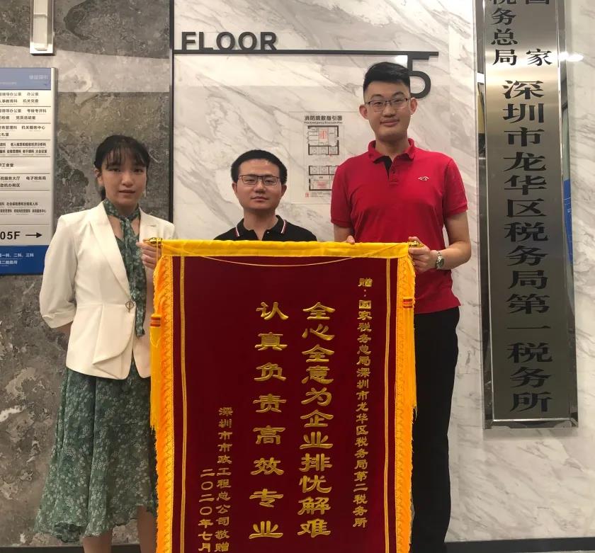 龍華區(qū)稅務局第二稅務所接收錦旗并表示,今后將繼續(xù)堅持以納稅人為中心的服務理念,以更高漲的工作熱情、更誠懇的工作態(tài)度和更便利的納稅服務支持市政總公司的發(fā)展。