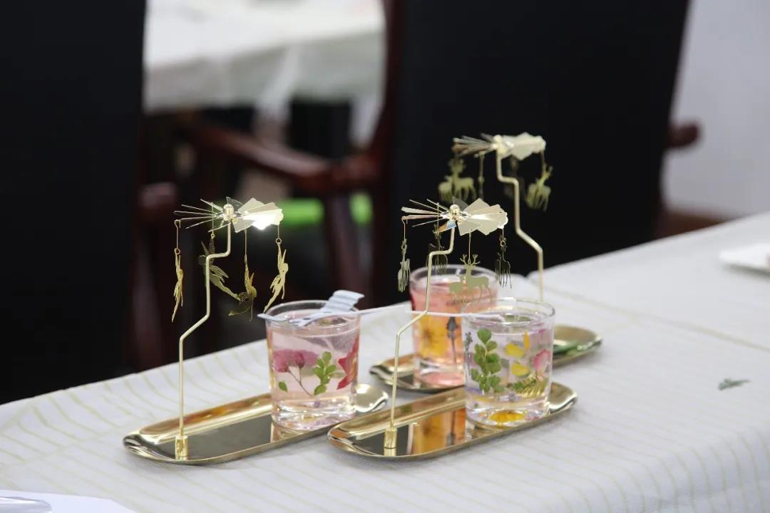 在老師的指導(dǎo)下,女神們奇思妙想,經(jīng)過挑選不同風(fēng)格花材、構(gòu)圖黏花、攪拌融蠟、滴精油、組裝等步驟,根據(jù)自己的喜好和創(chuàng)意,親手制作出一個個芳香四溢、別具匠心的香薰蠟燭走馬燈。