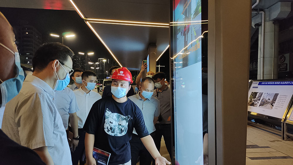 王衛(wèi)一行隨后察看了瀅水山莊2公交站智慧公交站臺(tái),詳細(xì)了解智慧公交站臺(tái)的外觀(guān)、公交信息顯示、智慧屏內(nèi)容等智慧功能的展示,尤其是對(duì)多功能路燈桿集照明、交通信號(hào)燈、視頻監(jiān)控、大氣監(jiān)測(cè)等多功能為一體,有效地減少道路桿體數(shù)量,化繁為簡(jiǎn)的舉措給予了高度贊揚(yáng),肯定了公交站臺(tái)的智慧化改造方向和智慧城市建造的前瞻性;