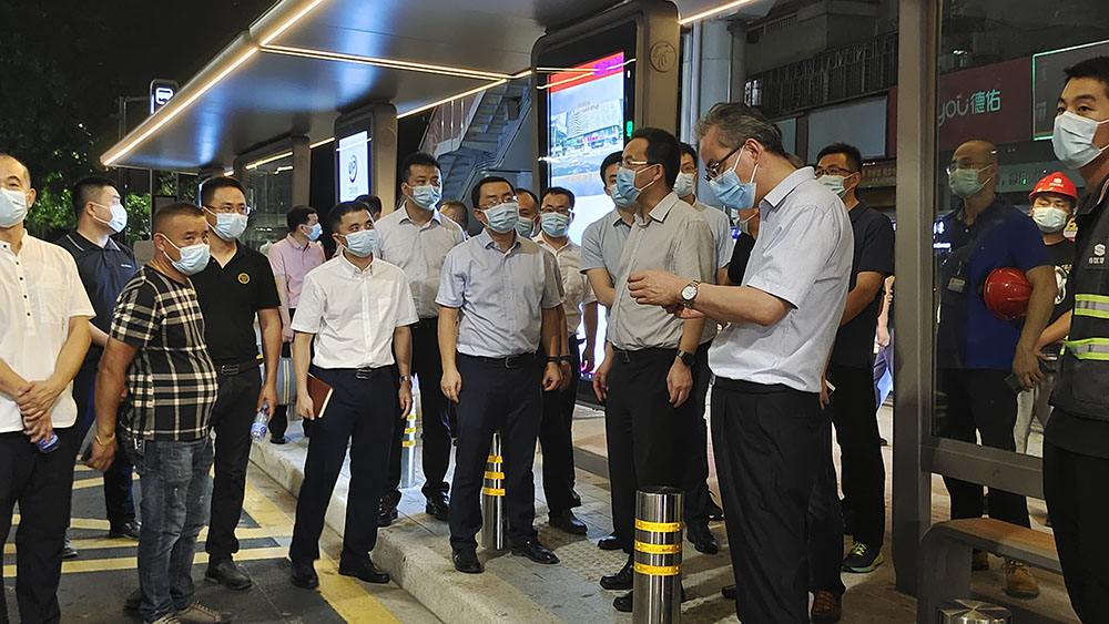 2021年6月21日晚,龍華區(qū)委書(shū)記王衛(wèi)同志率隊(duì)調(diào)研特區(qū)建工五和大道(梅觀(guān)高速-雅南路)段品質(zhì)提升工程,區(qū)建筑工務(wù)署署長(zhǎng)白小宇、市政總公司董事長(zhǎng)陳儉、總經(jīng)理龔穎、副總經(jīng)理羅燕山、天健一建總經(jīng)理白龍威陪同。